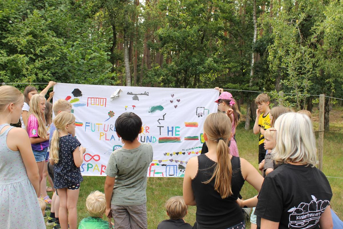 In diesem Jahr waren 30 Kinder mit einem Team aus ehren- und hauptamtlichen Mitarbeiter:innen im Schullandheim Gerdshütte. „Was ist eigentlich Demokratie?“ So lautete unser Thema. Mit Hilfe des gleichnamigen Buches von S.L. Starken und T. Ruthe und der „Titelheldin“ Toni aus der Orangenkiste machten wir uns auf die Suche nach Antworten. Wir lernten Abstimmungen und Diskussionen kennen, überlegten was für Kinder wichtig ist, malten große Plakate und bauten Spielplatzmodelle. Morgens starteten wir mit einer kleinen Andacht, es wurde viel auf dem weitläufigen Gelände im Wald gespielt, gebastelt und ein abwechslungsreiches Abendprogramm rundeten die einzelnen Tage ab.