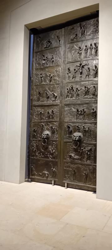 und Umgestaltung, hinterlässt die klare Architektur in Zusammenhang mit den kirchlichen Kunstschätzen einen berührenden Eindruck. Besonders die Bernwardtür, eine geschmückte Bronzetür auf der Szenen aus dem altem und